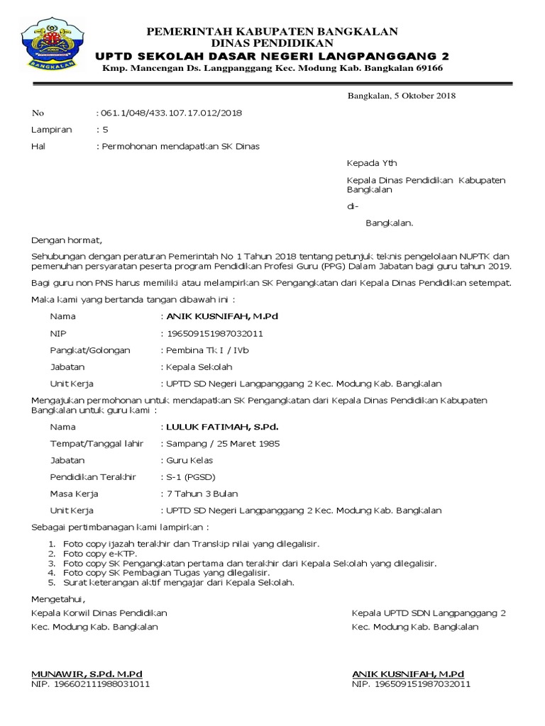 Sebagai dokumen pelengkap, bersama ini saya juga melampirkan: Kumpulan contoh surat permohonan untuk kerjasama, rekomendasi, bantuan dana, permohonan maaf, beasiswa atau keperluan yang lain dengan penulisan yang baik dan benar. Permohonan penerbitan sk (surat keputusan). Ada kalanya ketika kita sekolah, kuliah, bekerja atau lainnya dalam lingkungan sosial bermasyarakat baik itu di sekolah, kampus, kantor atau lingkungan kedaerahan, kita akan dihadapkan dalam situasi tidak dapat mengerjakan sendiri dan memerlukan bantuan, pertolongan, izin. Contoh surat permohonan sk bupati untuk pengajuan nuptk baru 2017.